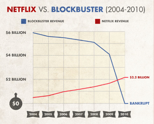 But fear not! Another deal was presented to Blockbuster to help them dive into a new, exciting world of mail-order movies. Reed Hastings, the Apollo 13-losing man inspired to rival Blockbuster out of spite, approached them with a deal: “Fifty-million dollars and you can have the whole thing.” Hastings was essentially laughed out of the room without even receiving a counteroffer. Right now, you can watch a TV show about the last Blockbuster in America only on Netflix.
