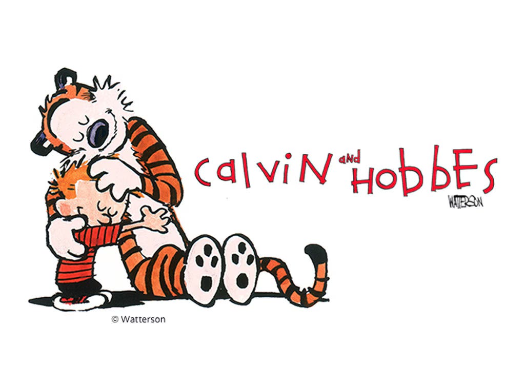 While having a mom guardian was helpful, I needed more to fully unlock sleep. We tried a number of things, but one thing worked better than the rest: One day, at the bookstore, I saw a cover with this little guy who kind of looked like me, who had a stuffed cat as a companion (I, too, had a stuffed animal kitty companion). It was a collection of comic strips called “Calvin and Hobbes”. Calvin, with his stuffed tiger Hobbes, got up to various hijinks and adventures driven by his wild imagination.