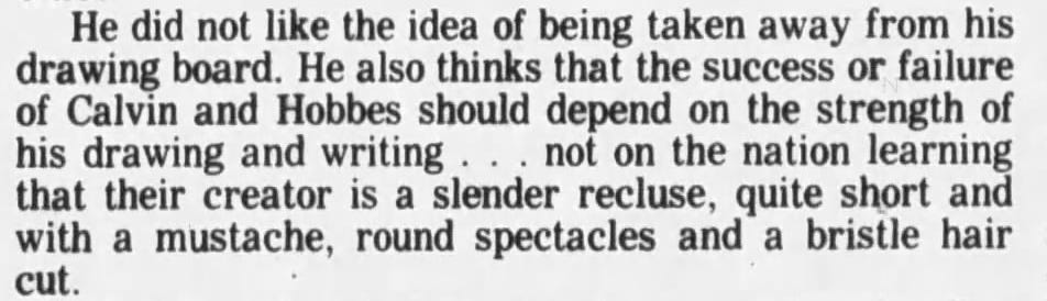 In “The Calvin and Hobbes Tenth Anniversary Book”, Bill Waterson volunteered his thoughts on the matter: